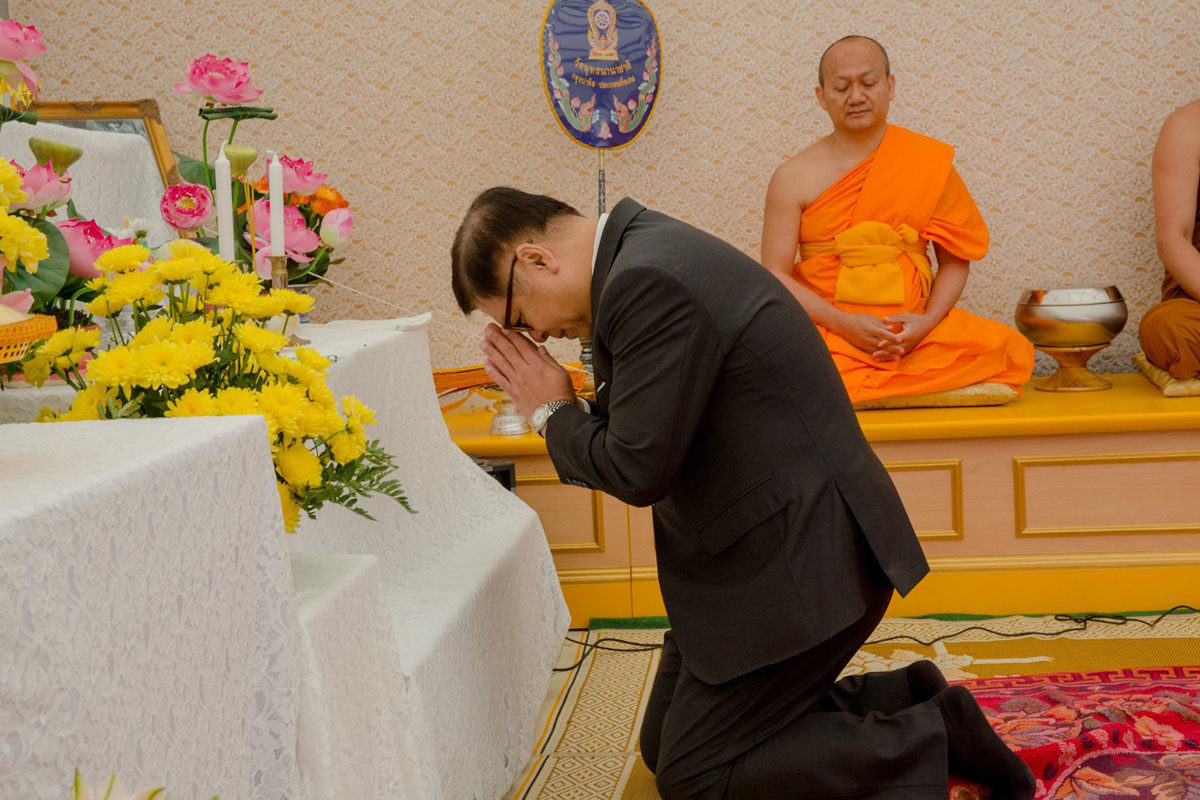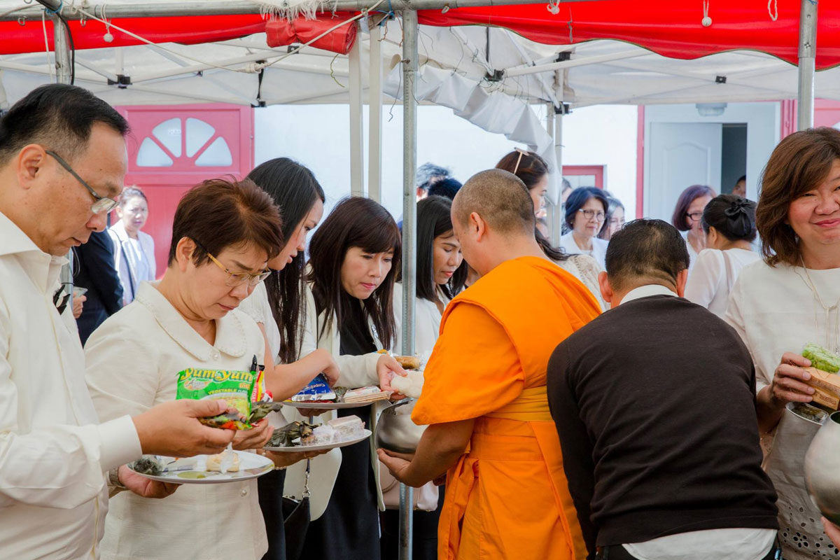 ต่อมาเวลา 11.00 น. เอกอัครราชทูตฯ และภริยา พร้อมด้วยข้าราชการและลูกจ้างสำนักงานทีมประเทศไทยและประชาชน ได้ร่วมพิธีทำบุญตักบาตรถวายเป็นพระราชกุศล ณ วัดพุทธนานาชาติ เมือง Villejuif โดยมีผู้เข้าร่วมจำนวนประมาณ 80 คน