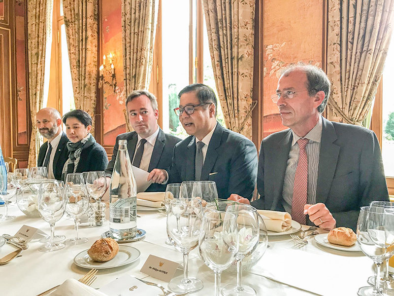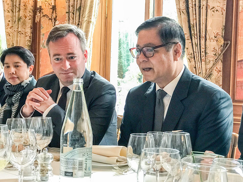 2 ตุลาคม 2560 – Cercle de l’Union interalliée กรุงปารีส ประเทศฝรั่งเศส – นายสีหศักดิ์ พวงเกตุแก้ว เอกอัครราชทูต ณ กรุงปารีส ได้เป็นเจ้าภาพเลี้ยงอาหารกลางวันเพื่อเป็นเกียรติให้กับนายสุวิทย์ เมษินทรีย์ รัฐมนตรีประจำสำนักนายกรัฐมนตรี ในโอกาสที่เดินทางเยือนกรุงปารีสเพื่อเข้าร่วมการประชุมในกรอบของ OECD และพบหารือกับผู้แทนฝ่ายฝรั่งเศส โดยมีนาย Jean-Baptiste LEMOYNE รัฐมนตรีช่วยว่าการกระทรวงกิจการยุโรปและการต่างประเทศของฝรั่งเศส นาย François CORBIN ประธานสภาธุรกิจฝรั่งเศส-ไทย ภายใต้ MEDEF International พร้อมกลุ่มนักธุรกิจฝรั่งเศส เข้าร่วมด้วย