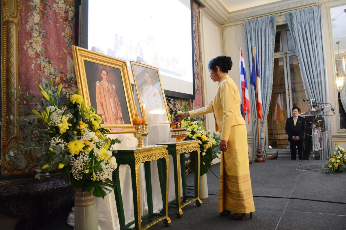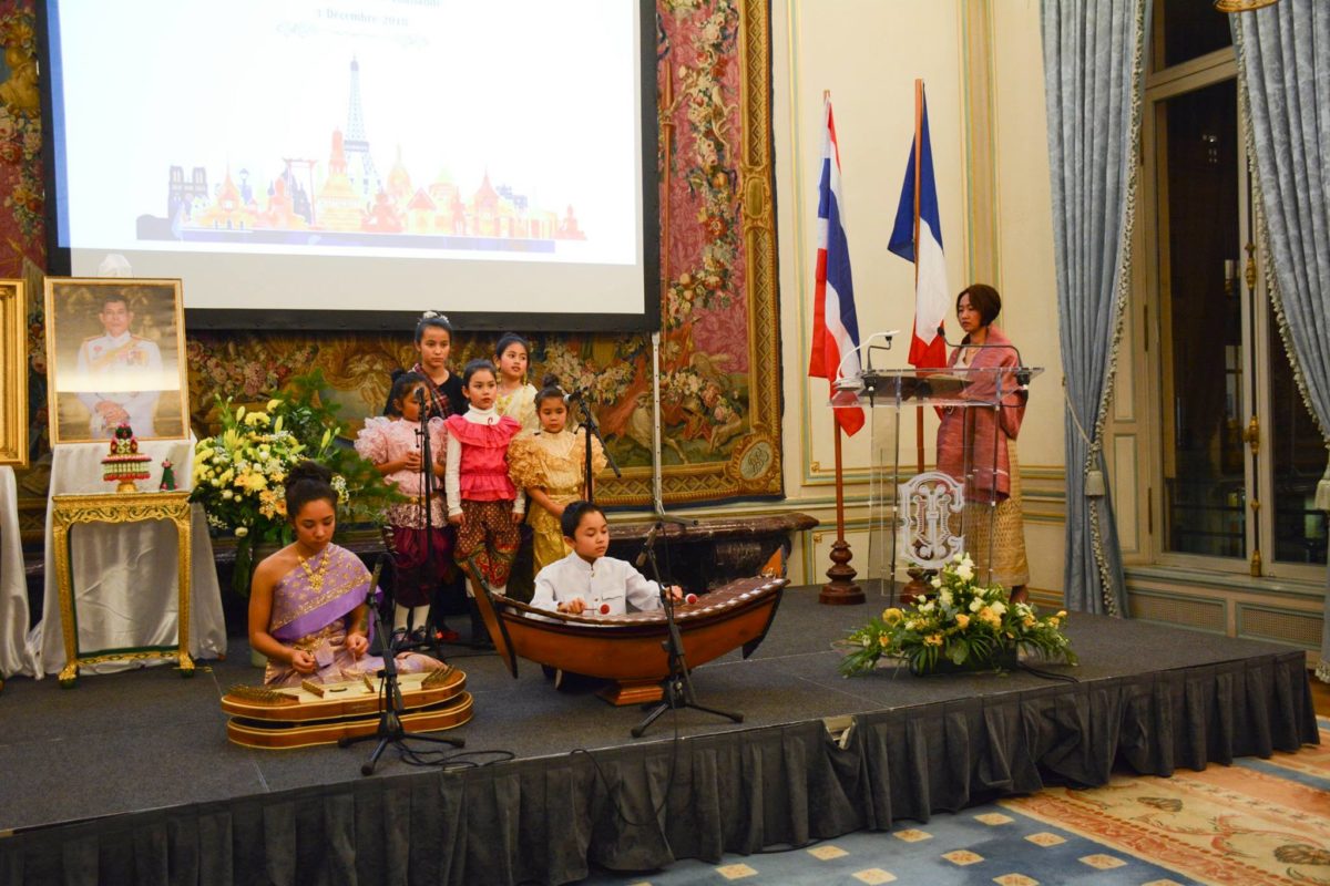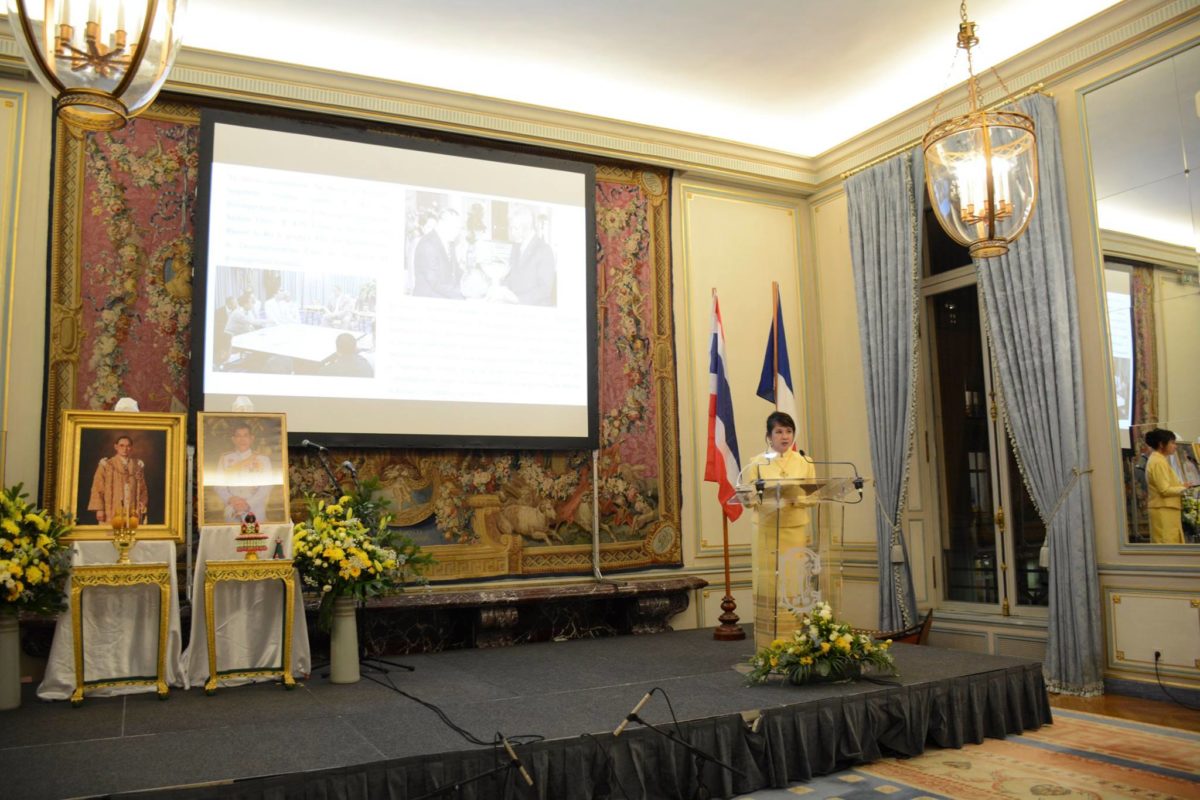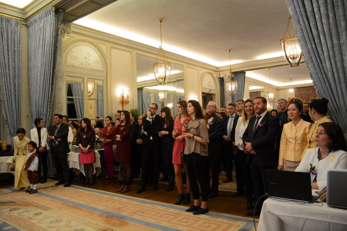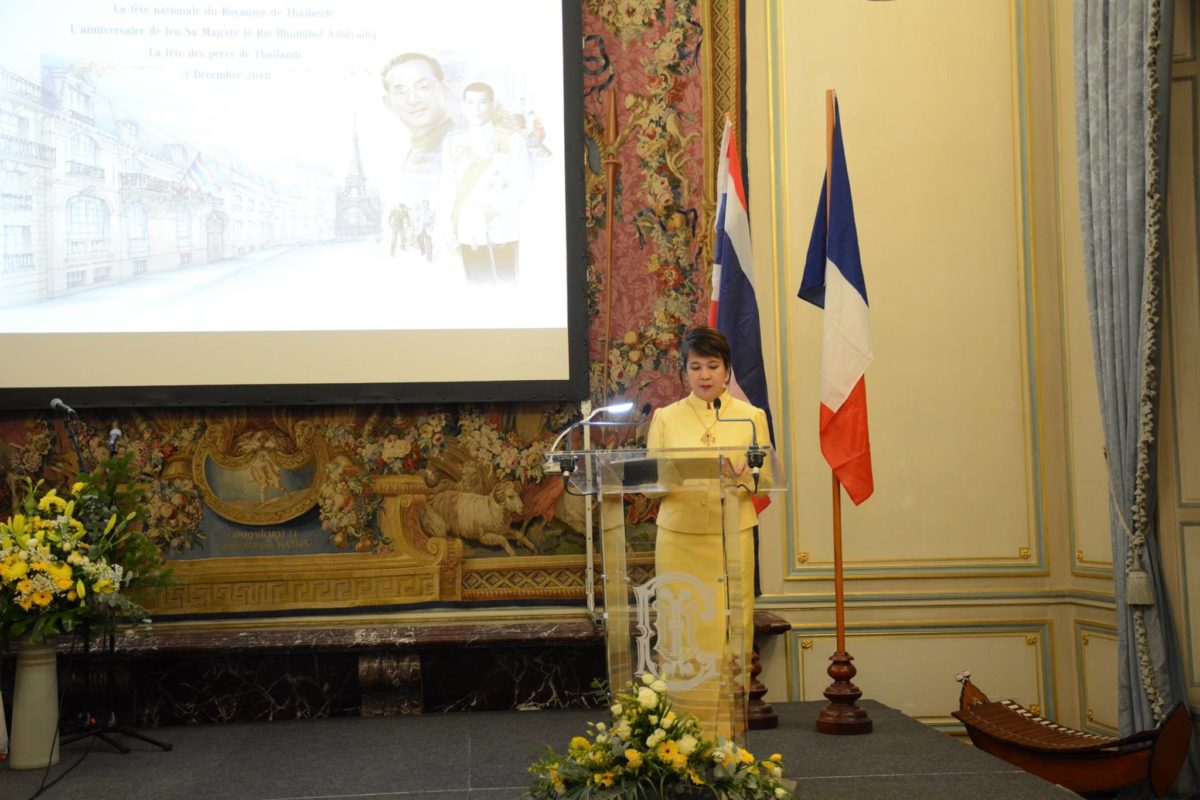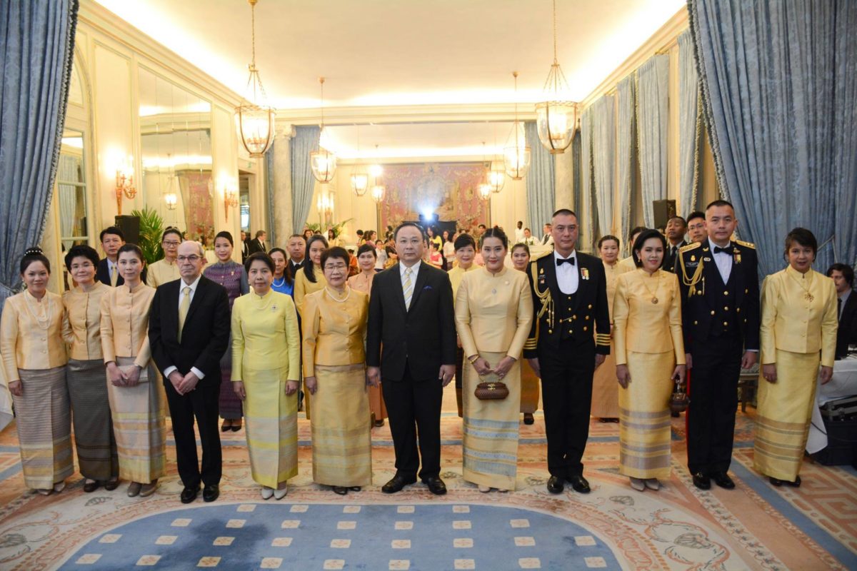 เมื่อวันที่ 3 ธ.ค. 2561 สถานเอกอัครราชทูต ณ กรุงปารีส ได้จัดงานเลี้ยงรับรอง เนื่องในโอกาสวันคล้ายวันเฉลิมพระชนมพรรษา พระบาทสมเด็จพระปรมินทรมหาภูมิพลอดุลยเดช บรมนาถบพิตร วันชาติ และวันพ่อแห่งชาติ ประจำปี 2561 ที่ Cercle de l’Union Interalliée โดยมีผู้เข้าร่วมจำนวนประมาณ 250 คน ประกอบด้วย คณะทูตานุทูต นักธุรกิจ ผู้แทนหน่วยงานภาครัฐ เอกชน สมาคม องค์กรต่าง ๆ ที่เป็นเครือข่ายประสานงานของสถานเอกอัครราชทูตฯ และหน่วยงานทีมประเทศไทย ประจำกรุงปารีส