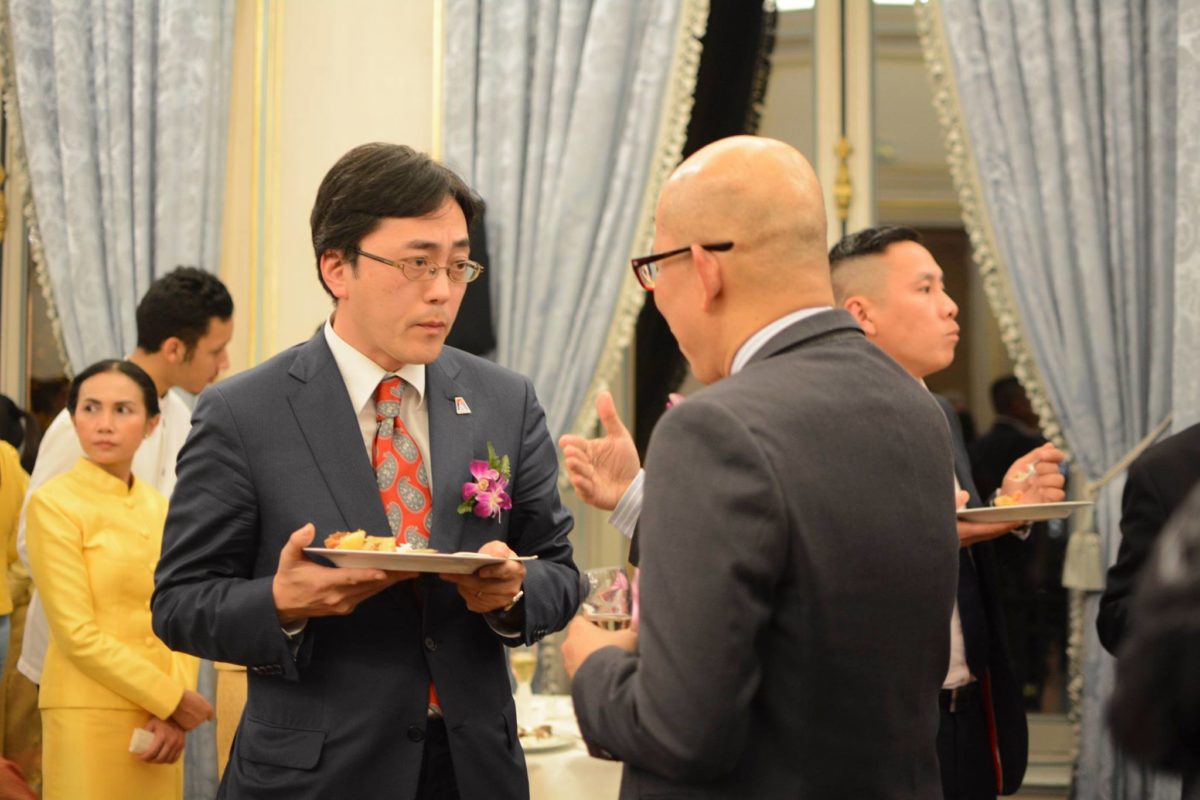จากนั้นเวลา 19.15 น. อุปทูตฯ ได้กล่าวสุนทรพจน์เปิดงาน โดยได้กล่าวถวายราชสดุดีพระบาทสมเด็จพระปรมินทรมหาภูมิพลอดุลยเดช บรมนาถบพิตร ที่ได้ทรงมุ่งมั่นบำเพ็ญพระราชกรณียกิจนานัปการ เพื่อพัฒนาคุณภาพชีวิตของปวงชนชาวไทยตลอดรัชสมัย และทรงได้รับการยกย่องจากสหประชาชาติให้เป็นพระมหากษัตริย์นักพัฒนา นอกจากนี้ สหประชาชาติยังได้ประกาศให้วันที่ 5 ธ.ค. ของทุกปี เป็นวันดินโลก เพื่อน้อมรำลึกถึงพระมหากรุณาธิคุณด้านการพัฒนาทรัพยากรดินของพระบาทสมเด็จพระปรมินทรมหาภูมิพลอดุลยเดช บรมนาถบพิตร อีกด้วย ทั้งนี้ แม้ว่าพระบาทสมเด็จพระปรมินทรมหาภูมิพลอดุลยเดช บรมนาถบพิตร จะเสด็จสู่สวรรคาลัย สมเด็จพระเจ้าอยู่หัวมหาวชิราลงกรณ บดินทรเทพยวรางกูร ทรงสืบสานพระราชปณิธาน โดยทรงให้ความสำคัญต่อปรัชญาเศรษฐกิจพอเพียงและการพัฒนาประเทศ และทรงสนับสนุนให้ประชาชนชาวไทยยึดมั่นในความดีและปฏิบัติตามแนวทางปฏิบัติที่พระบาทสมเด็จพระปรมินทรมหาภูมิพลอดุลยเดช บรมนาถบพิตร ได้ทรงพระราชทานไว้