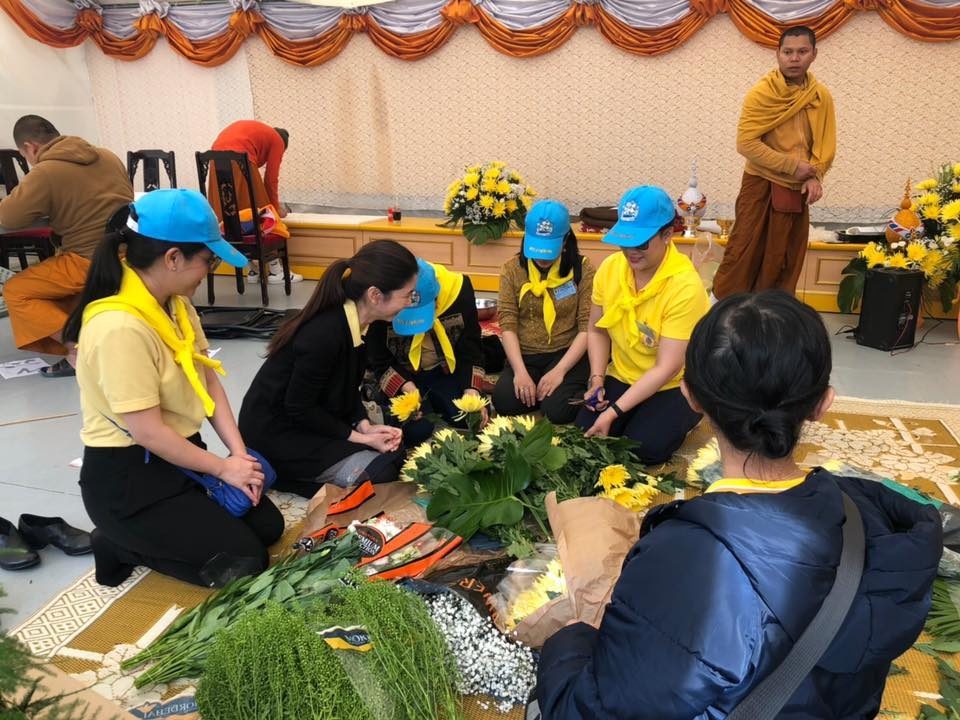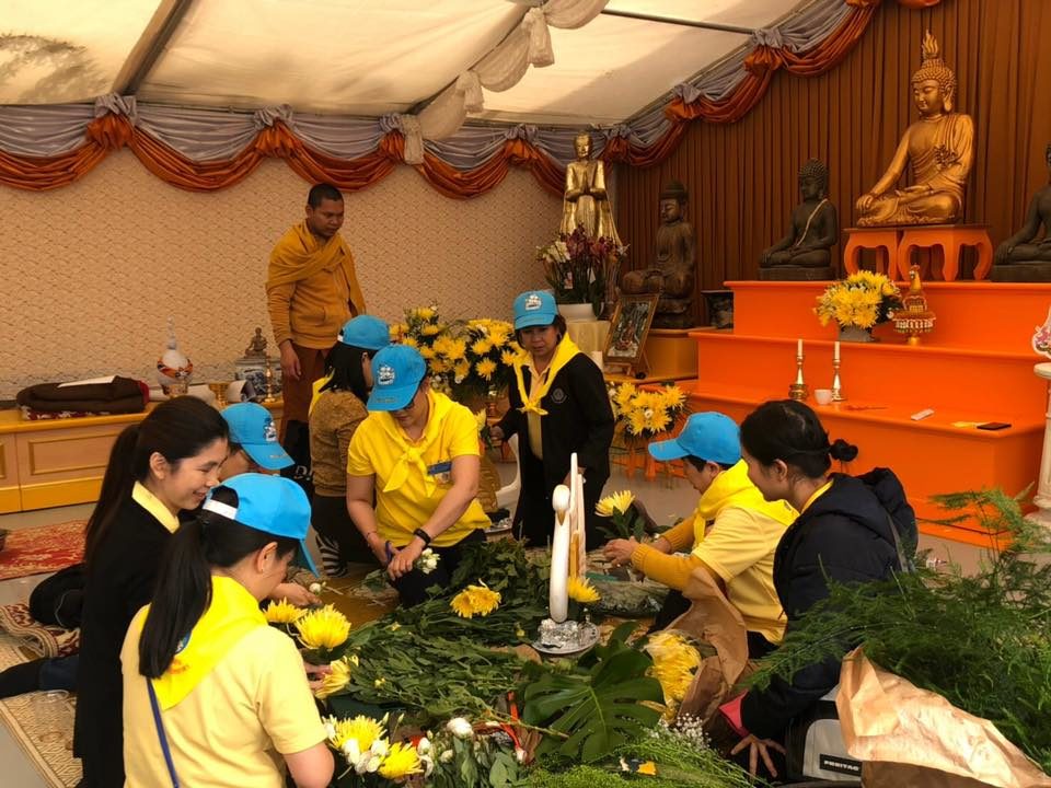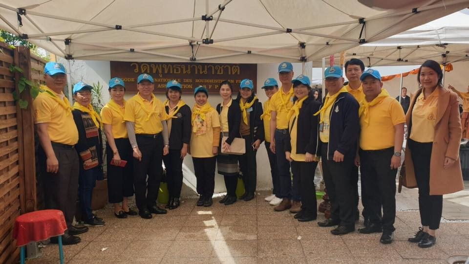 เมื่อวันที่ 3 พฤษภาคม 2562 นายศรัณย์ เจริญสุวรรณ เอกอัครราชทูต ณ กรุงปารีส และภริยา นำคณะข้าราชการและเจ้าหน้าที่ของสถานเอกอัครราชทูตฯ และหัวหน้าสำนักงานทีมประเทศไทยประจำกรุงปารีส พร้อมด้วยตัวแทนชุมชนไทยในกรุงปารีส จัดกิจกรรมจิตอาสาเพื่อเฉลิมพระเกียรติและน้อมถวายเป็นพระราชกุศลแด่สมเด็จพระเจ้าอยู่หัว เนื่องในโอกาสพระราชพิธีบรมราชาภิเษก พุทธศักราช 2562 โดยสถานเอกอัครราชทูตฯ ได้ทำความสะอาดและฟื้นฟูทัศนียภาพวัดไทยพุทธนานาชาติ และช่วยกันจัดเตรียมสถานที่สำหรับพิธีทำบุญทางศาสนา เพื่อถวายเป็นพระราชกุศล เนื่องในโอกาสพิธีบรมราชาภิเษก วันที่ 4 พฤษภาคม 2562 ด้วย