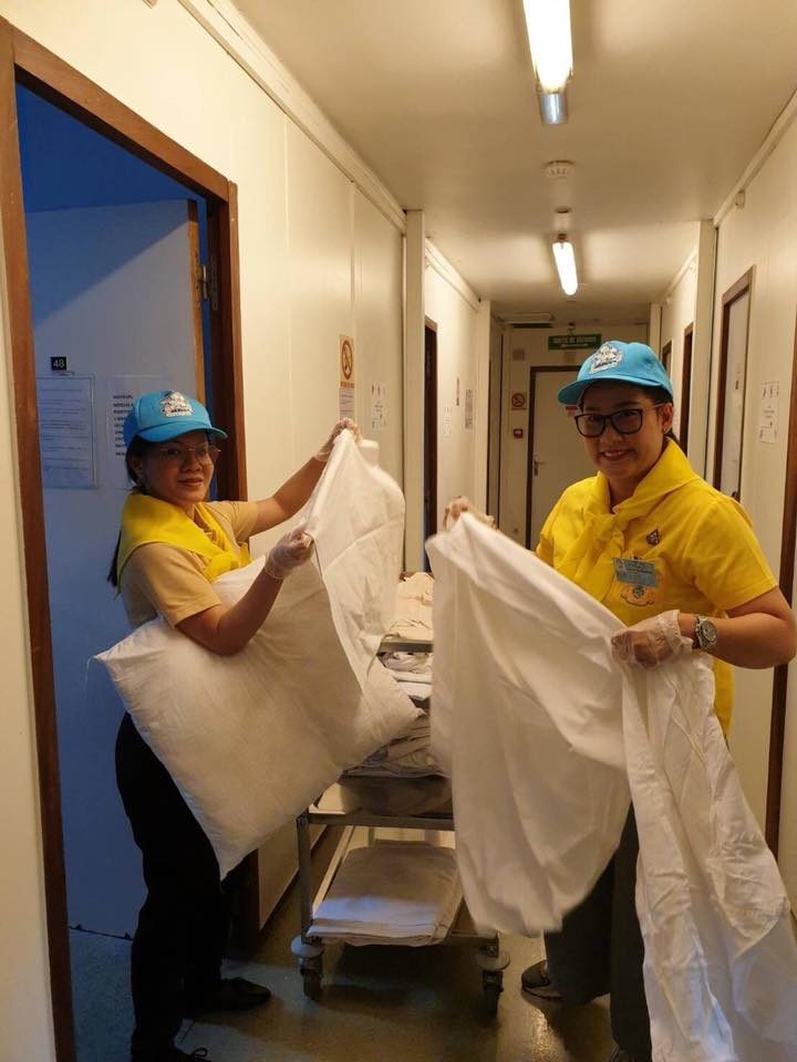 สถานเอกอัครราชทูตฯ ได้เตรียมอาหารไทยและได้ร่วมรับประทานอาหารและพูดคุยกับผู้พักพิงบนเรือ และได้ร่วมทำกิจกรรมต่าง ๆ อาทิ ทำความสะอาดและเตรียมที่นอนสำหรับผู้พักพิง พร้อมนำเสื้อผ้าไปบริจาคให้แก่ผู้พักพิงบนเรืออีกด้วย