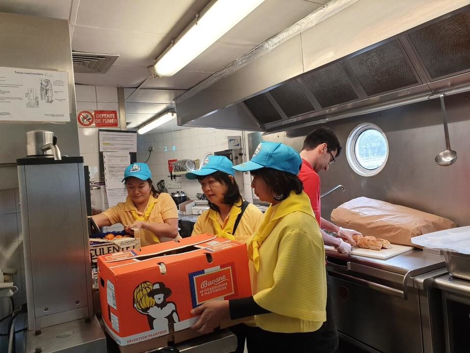 เมื่อวันที่ 11 พ.ค. 2562 นายศรัณย์ เจริญสุวรรณ เอกอัครราชทูต ณ กรุงปารีส พร้อมด้วยภริยา ข้าราชการและเจ้าหน้าที่หน่วยงานทีมประเทศไทย ณ กรุงปารีส และตัวแทนชุมชนไทย ได้ร่วมทำกิจกรรมจิตอาสา เพื่อถวายเป็นพระราชกุศลและเฉลิมพระเกียรติ เนื่องในโอกาสมหามงคลพระราชพิธีบรมราชาภิเษก ณ La Péniche du Cœur กรุงปารีส ซึ่งเป็นที่พักพิงของผู้ไร้ที่อยู่อาศัยในกรุงปารีส (สามารถต้อนรับผู้พักพิงได้สูงสุด 70 คน)