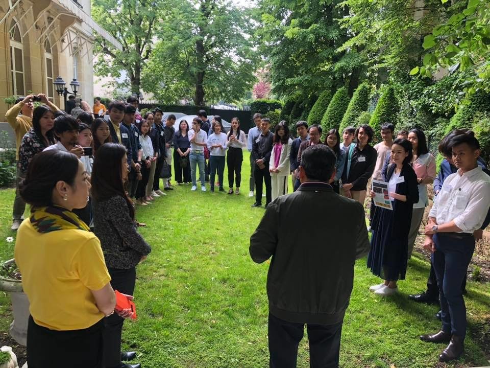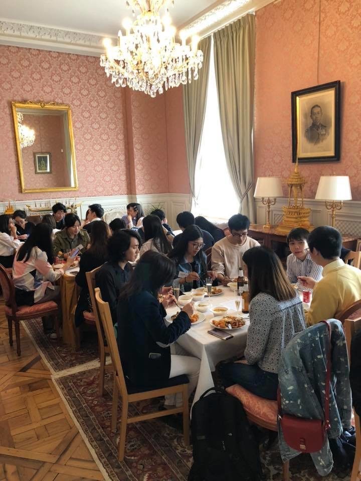 เมื่อวันที่ 25 พ.ค. 2562 นายศรัณย์ เจริญสุวรรณ เอกอัครราชทูต ณ กรุงปารีส พร้อมภริยา ได้ให้การต้อนรับและเลี้ยงรับรองอาหารกลางวันแก่คณะนักศึกษาไทยที่ศึกษาอยู่ในประเทศฝรั่งเศส จำนวน 40 คน ณ ทำเนียบเอกอัครราชทูต เพื่อเปิดโอกาสให้นักศึกษาได้พบปะพูดคุย แลกเปลี่ยนประสบการณ์ และสร้างเครือข่ายระหว่างกัน ตลอดจนทำความรู้จักกับเจ้าหน้าที่หน่วยงานภาครัฐของไทยในกรุงปารีสที่มีหน้าที่ดูแลนักศึกษาในขณะที่พำนักอยู่ในฝรั่งเศส