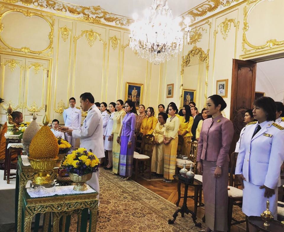 ในโอกาสนี้ เอกอัครราชทูตได้เปิดกรวยกระทงดอกไม้ธูปเทียนแพ ถวายราชสักการะเบื้องหน้าพระบรมฉายาลักษณ์ สมเด็จพระนางเจ้าฯ พระบรมราชินี และได้กล่าวถวายพระพรชัยมงคล จากนั้น คณะสงฆ์ได้เจริญพระพุทธมนต์และสวดมนต์เพื่อถวายเป็นพระราชกุศล