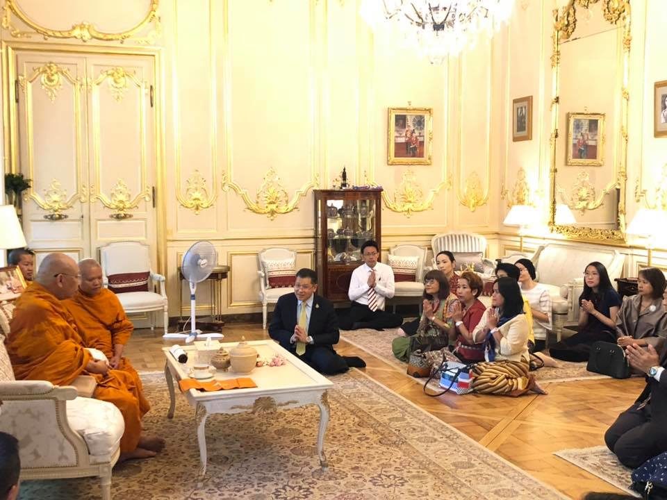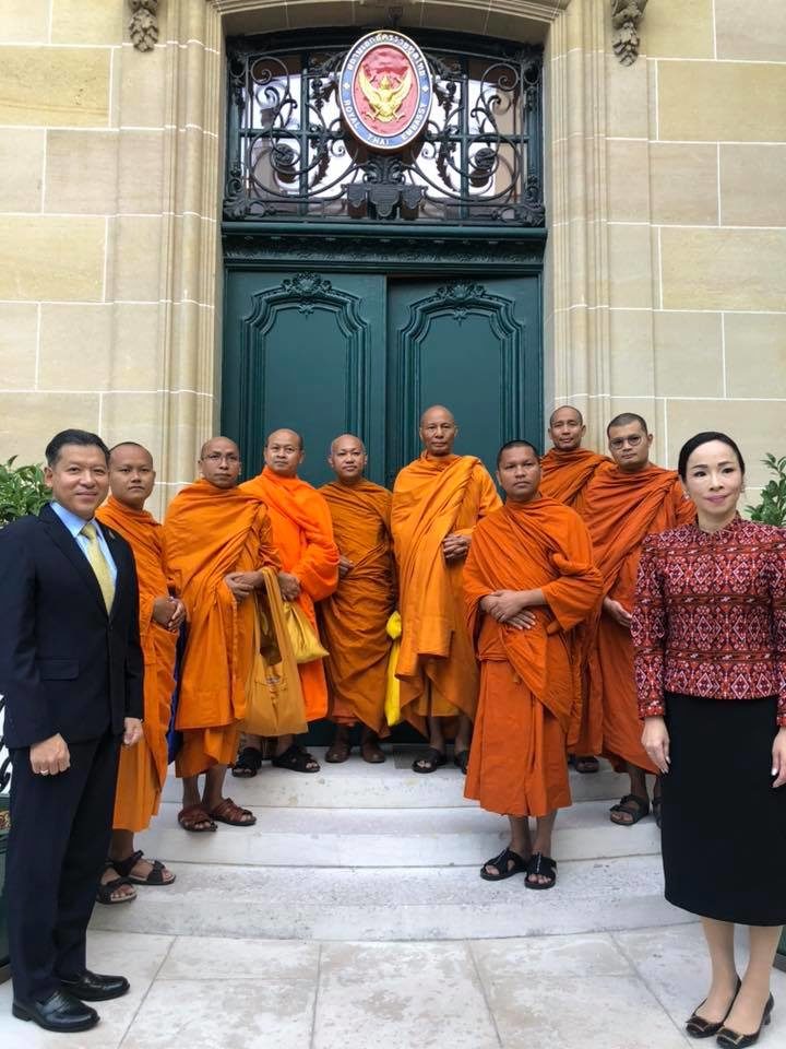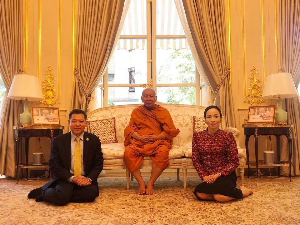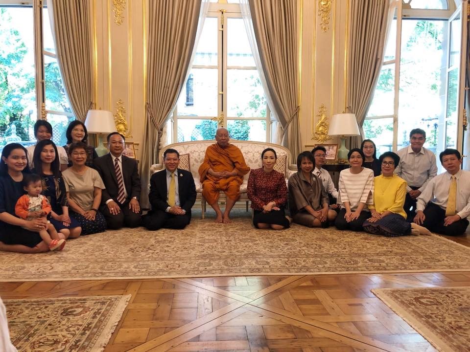 เมื่อวันที่ 26 สิงหาคม 2562 เจ้าประคุณ สมเด็จพระมหาธีราจารย์ กรรมการมหาเถรสมาคม เจ้าอาวาสวัดยานนาวา ผู้ปฏิบัติหน้าที่แทนประธานสำนักงานกำกับดูแลพระธรรมทูตไปต่างประเทศ ประธานฝ่ายสาธารณสงเคราะห์ ของมหาเถรสมาคม รับถวายสักการะ ในการที่นายศรัณย์ เจริญสุวรรณ เอกอัครราชทูต ณ กรุงปารีส และภริยา ข้าราชการและเจ้าหน้าที่หน่วยงานทีมประเทศไทย และตัวแทนชุมชนไทยในกรุงปารีส เข้ากราบถวายสักการะ ในโอกาสมหามงคลรับพระราชทานสถาปนาสมณศักดิ์ เป็นสมเด็จพระราชาคณะในราชทินนามที่ “สมเด็จพระมหาธีราจารย์” เนื่องในโอกาสมหามงคลวันเฉลิมพระชนมพรรษา 28 กรกฎาคม พุทธศักราช 2562 ณ ทำเนียบเอกอัครราชทูต โดยการเดินทางเยือนกรุงปารีสในครั้งนี้ เจ้าประคุณ สมเด็จพระมหาธีราจารย์ พร้อมด้วยคณะสงฆ์จากประเทศไทย และพระมหานงค์ สุมงฺคโล ป.ธ.๙ หัวหน้าสงฆ์วัดนวมินทรราชูทิศ ลียง และคณะสงฆ์ ได้ปฏิบัติศาสนกิจและสำรวจพื้นที่ขยายสร้างวัดไทยในฝรั่งเศสด้วย
