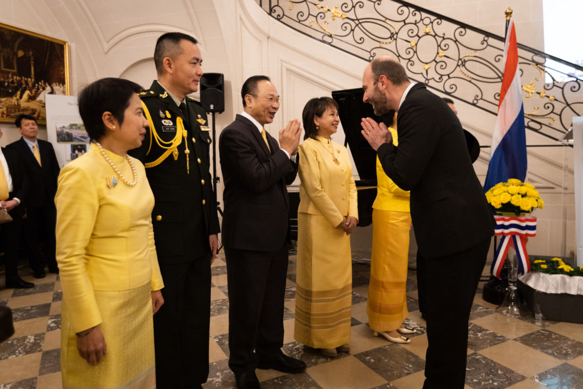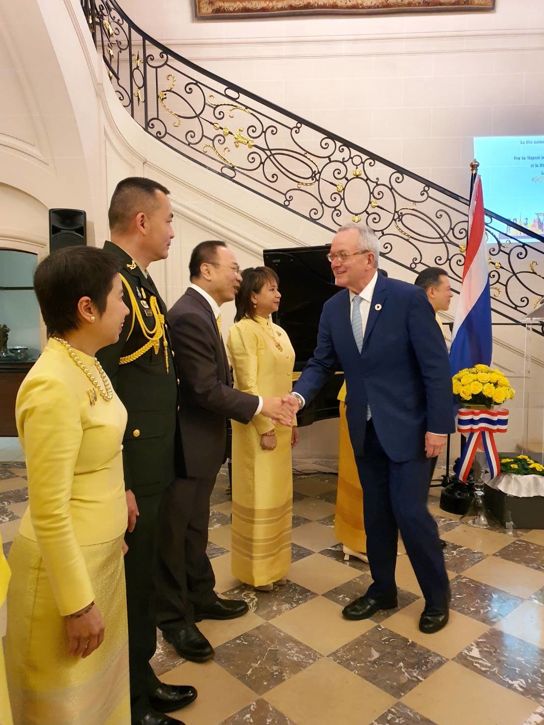 เมื่อวันที่ 3 ธันวาคม 2562 สถานเอกอัครราชทูต ณ กรุงปารีส ได้จัดงานเลี้ยงรับรองเนื่องในโอกาสวันคล้ายวันพระบรมราชสมภพพระบาทสมเด็จพระบรมชนกาธิเบศร มหาภูมิพลอดุลยเดชมหาราช บรมนาถบพิตร วันชาติ และวันพ่อแห่งชาติ วันที่ 5 ธันวาคม 2562 ณ ทำเนียบเอกอัครราชทูต โดยมีแขกผู้มีเกียรติเข้าร่วมประมาณ 200 คน อาทิ นาย Thierry MATHOU อธิบดีกรมกิจการเอเชียฯ กระทรวงการต่างประเทศฝรั่งเศส และข้าราชการ นาย François CORBIN รองประธาน MICHELIN และประธานสภาธุรกิจฝรั่งเศส-ไทย ภายใต้สภานายจ้างฝรั่งเศส (MEDEF International) คณะทูตานุทูต ตัวแทนจากภาครัฐ ภาคเอกชน สมาคม สื่อมวลชน ตัวแทนสมาคมและชุมชนไทยในฝรั่งเศส ตัวแทนสมาคมนักเรียนไทยในฝรั่งเศสฯ และ Friends of Thailand เป็นต้น