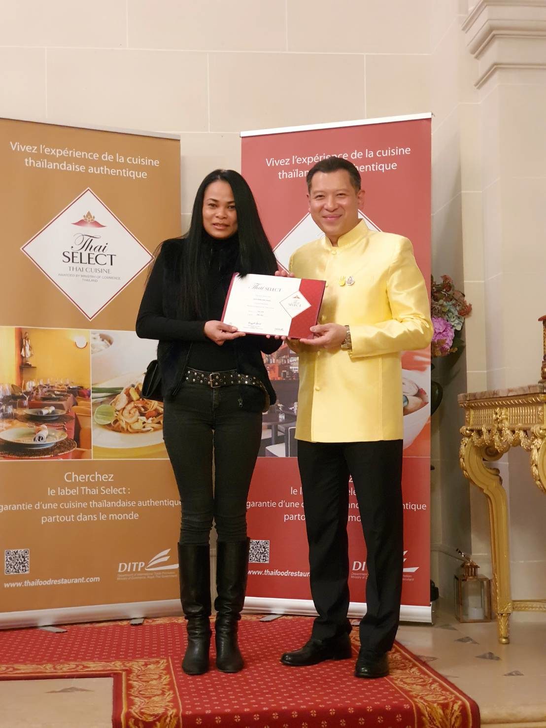 นอกจากนี้ สำนักงานส่งเสริมการค้าในต่างประเทศ ยังได้ถือโอกาสนี้ ประกาศเกียรติคุณและมอบเกียรติบัตรแก่ร้านอาหารไทยที่ได้รับมาตรฐาน Thai Select โดยในปีนี้ มีร้านอาหารไทยที่ได้รับเลือกจำนวน 5 ร้าน ได้แก่ 1. ร้าน L’Orchidée (เมือง Altkirch) ได้รับเลือกให้เป็น Thai Select Premium 2. ร้าน Khun Arkorn (กรุงปารีส) 3. ร้าน Thai Thai (กรุงปารีส) 4. ร้าน Bangkok Royal (เมือง Lyon) และ 5. ร้าน Khrua Thai (เมือง Mulhouse) ได้รับเลือกให้เป็นร้าน Thai Select