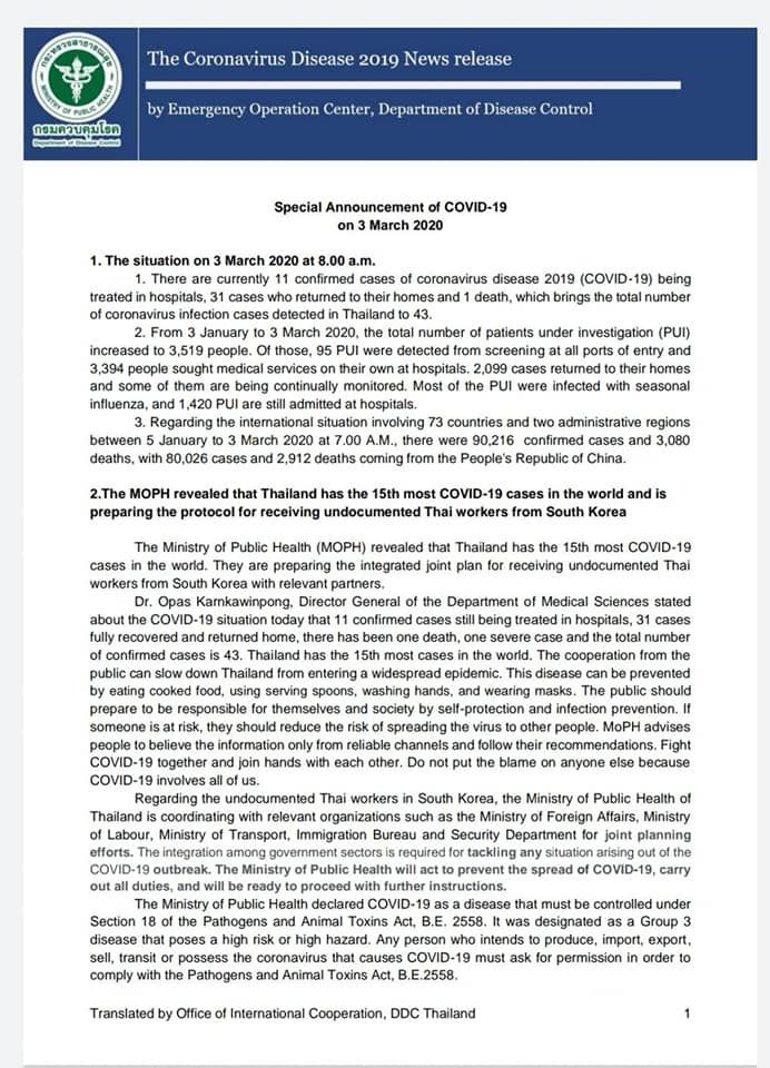 4.ในส่วนของไทย เมื่อวันที่ 3 มี.ค.2563 กระทรวงสาธารณสุขได้แจ้งข้อแนะนำเกี่ยวกับการปฏิบัติตัวของประชาชน รวมถึงผู้ที่เดินทางมาจากพื้นที่ระบาด (ทั้งคนไทยและชาวต่างชาติ) ดังนี้