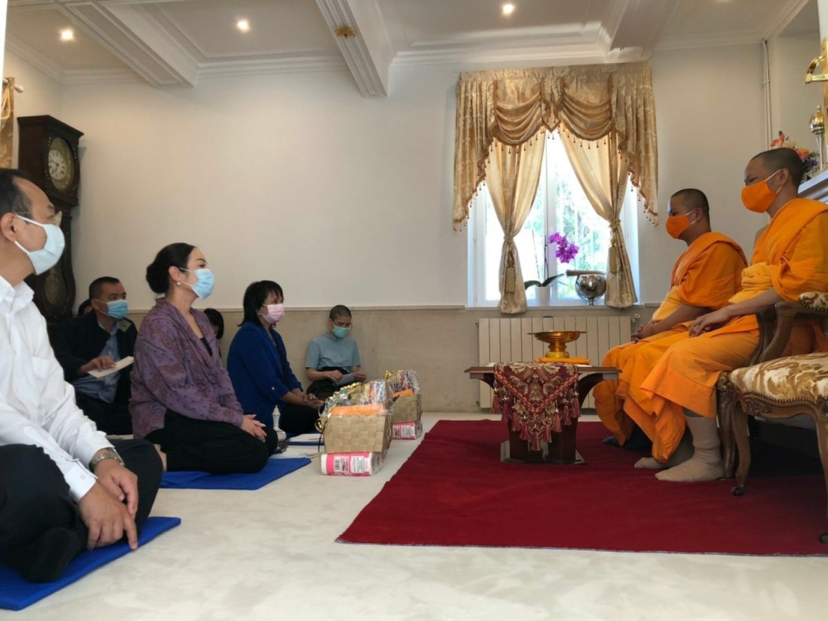 2. ขณะเดียวกัน นางมาฆวดี สุมิตรเหมาะ อัครราชทูต ณ กรุงปารีส ได้นำคณะข้าราชการทีมประเทศไทยประจำกรุงปารีสเดินทางไปนมัสการเจ้าอาวาสและทำบุญถวายสังฆทานที่วัดพระธรรมกาย Bordeaux ซึ่งเป็นวัดไทยแห่งเดียวในเมือง Bordeaux เพื่อพบปะกับชุมชนไทย