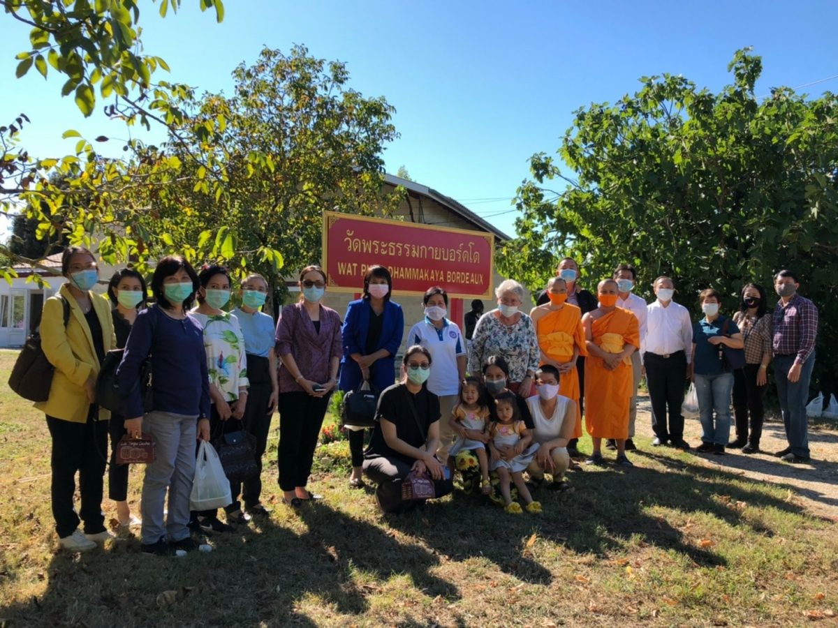 2. ขณะเดียวกัน นางมาฆวดี สุมิตรเหมาะ อัครราชทูต ณ กรุงปารีส ได้นำคณะข้าราชการทีมประเทศไทยประจำกรุงปารีสเดินทางไปนมัสการเจ้าอาวาสและทำบุญถวายสังฆทานที่วัดพระธรรมกาย Bordeaux ซึ่งเป็นวัดไทยแห่งเดียวในเมือง Bordeaux เพื่อพบปะกับชุมชนไทย