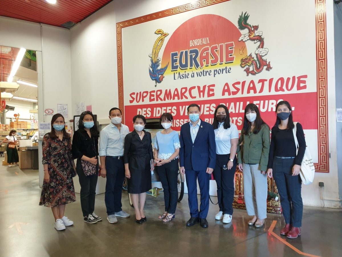 3. เมื่อเวลา 16.30 – 17.30 น. เอกอัครราชทูตฯ ได้เดินทางไปเยี่ยมกิจการบริษัท Eurasie เมือง Bordeaux ซึ่งเป็นบริษัทนำเข้าและค้าปลีกสินค้าอาหารเอเชีย รวมทั้งสินค้าจากประเทศไทย อาทิ ข้าวสาร ผักและผลไม้สด บะหมี่กึ่งสำเร็จรูป ซอสปรุงรสและผลไม้อบแห้ง หลากหลายประเภท รวมทั้งอาหารเอเชียปรุงสำเร็จอีกหลากเมนู ทั้งนี้ เมื่อปี 2562 บริษัทฯ มีผลประกอบการรวมทั้งหมดถึง 11.22 ล้านยูโร
