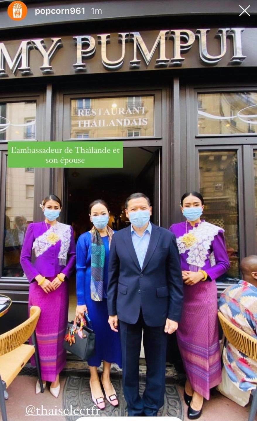 เมื่อวันเสาร์ที่ 12 ก.ย. 2563 นายศรัณย์ เจริญสุวรรณ เอกอัครราชทูต ณ กรุงปารีส และภริยา ได้เป็นประธานการจัดกิจกรรมเพื่อแนะนำและประชาสัมพันธ์ร้านอาหาร Thai SELECT ณ ร้านอาหาร My Pum Pui เมือง Levallois-Perret ชานกรุงปารีส ภายใต้โครงการพัฒนาส่งเสริมการตลาด สร้างภาพลักษณ์สินค้าอาหาร ธุรกิจบริการอาหาร และตราสัญลักษณ์ Thai SELECT ในภูมิภาคยุโรปตะวันตก ประจำปี 2563 ซึ่งจัดโดยสำนักงานส่งเสริมการค้าในต่างประเทศ ประจำกรุงปารีส โดยมี Dr. Frederic GUERIN, Director, Hardware Engineering Competence Center, Thales Defense Mission Systems นาย Didier DELANNEE ผู้นำเข้าข้าวไทยรายใหญ่ของฝรั่งเศส และบล็อกเกอร์ที่มีอิทธิพลในวงการอาหาร จำนวน 14 ราย อาทิ @popcorn961 @efoodtour และ @mellebonplan เป็นต้น เข้าร่วม