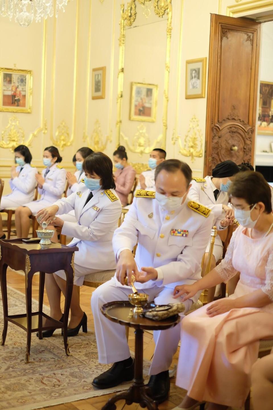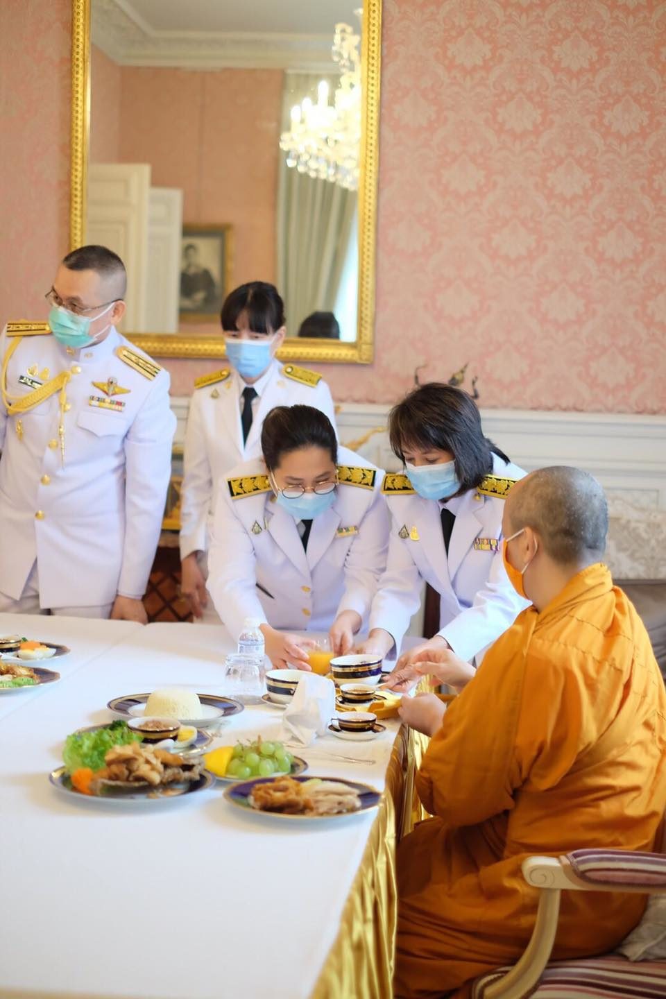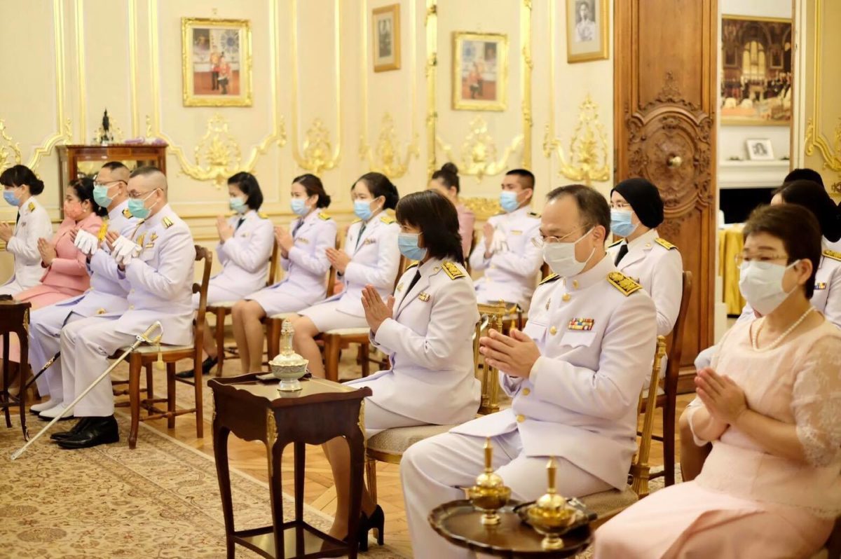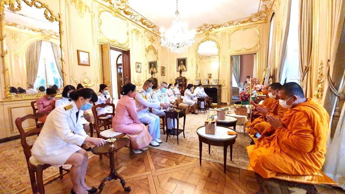จากนั้น อุปทูตฯ ได้นำผู้เข้าร่วมพิธีฯ ยืนสงบนิ่ง เป็นเวลา ๕๗ วินาที ตามด้วยการจัดพิธีสงฆ์ โดยคณะพระสงฆ์จากวัดพระธรรมกาย กรุงปารีส และวัดพุทธนานาชาติ กรุงปารีส ได้เจริญพระพุทธมนต์ และสวดมนต์เพื่อถวายเป็นพระราชกุศล จากนั้น อุปทูตฯ พร้อมด้วยข้าราชการและคู่สมรส ได้ร่วมกันถวายภัตตาหารเพลแด่พระภิกษุสงฆ์
