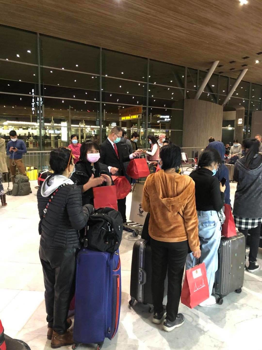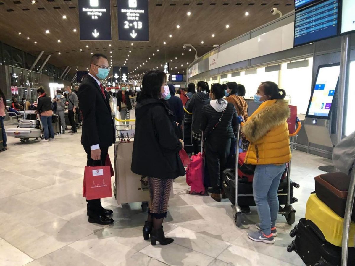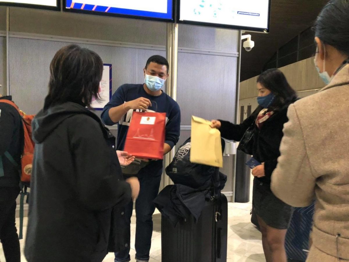 ในการนี้ คณะผู้แทนสถานเอกอัครราชทูตฯ ได้พูดคุยและมอบถุงกำลังใจ พร้อมอาหารและเครื่องอุปโภคแก่ผู้โดยสารทั้งไทยและต่างชาติ รวมทั้งช่วยอำนวยความสะดวกในตรวจเอกสารและประสานงานกับสายการบินไทยด้วย