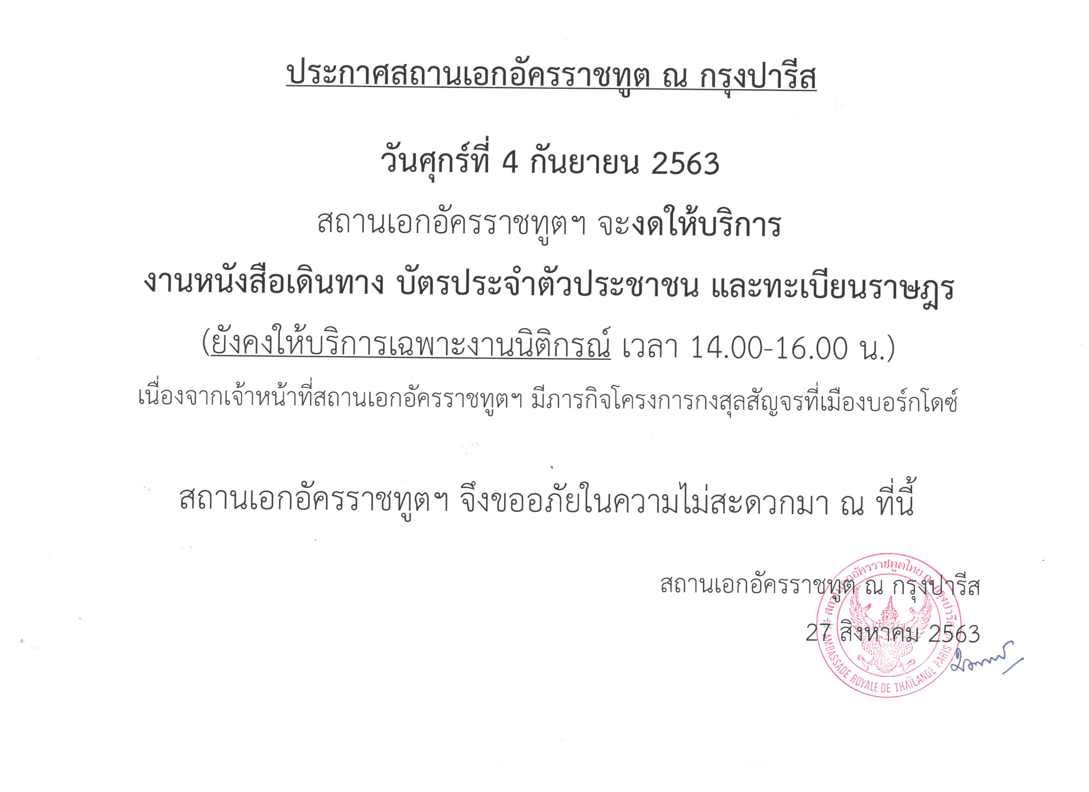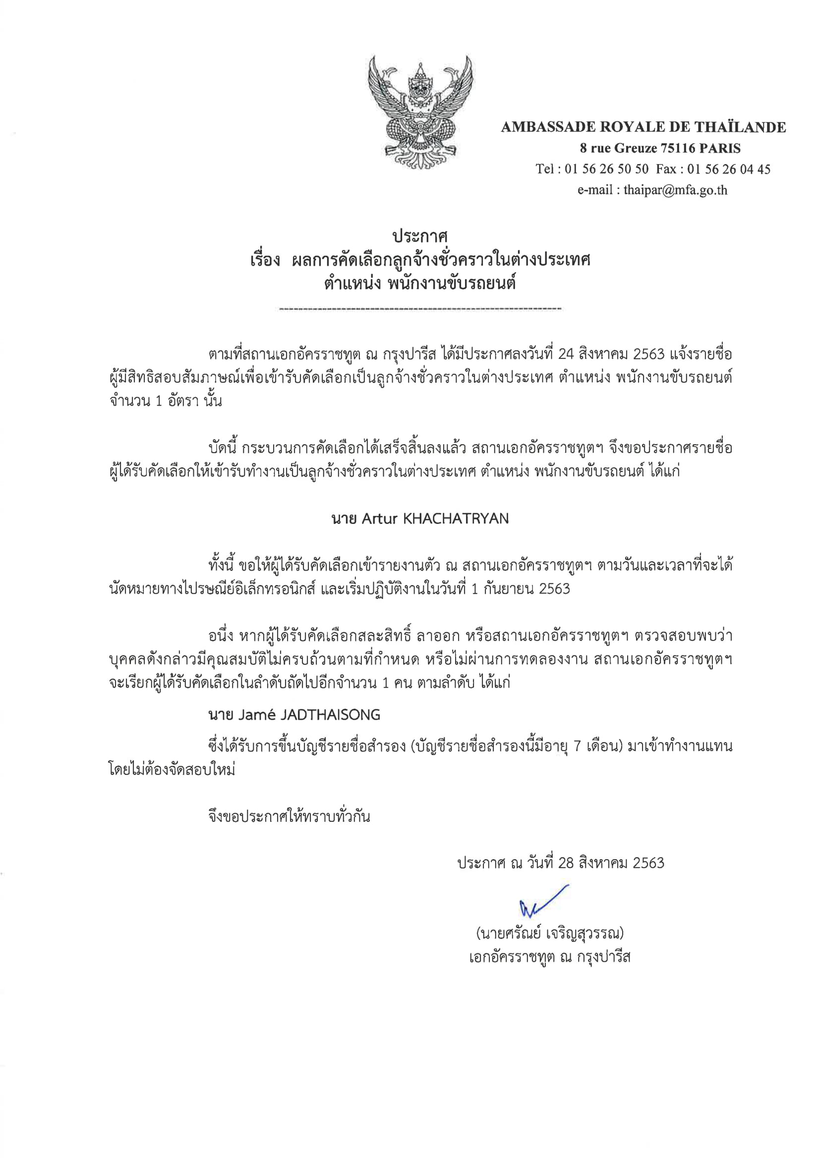 อ่านต่อ สถานเอกอัครราชทูต ณ กรุงปารีส ขอแสดงความเสียใจต่อการถึงแก่อนิจกรรมของเอกอัครราชทูต Jacques Lapouge อดีตเอกอัครราชทูตสาธารณรัฐฝรั่งเศสประจำประเทศไทย