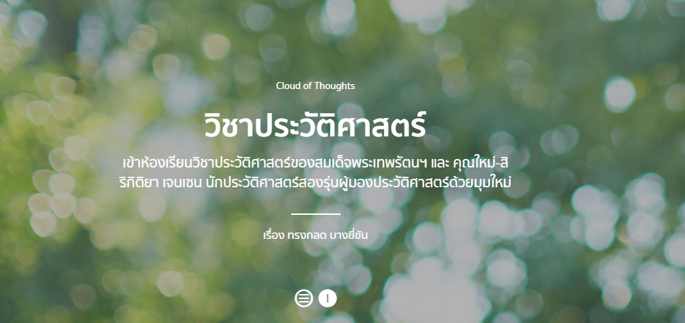 อ่านต่อ วิชาประวัติศาสตร์ : เข้าห้องเรียนวิชาประวัติศาสตร์ของสมเด็จพระเทพรัตนราชสุดา ฯ สยามบรมราชกุมารี และคุณใหม่-สิริกิติยา เจนเซน นักประวัติศาสตร์สองรุ่นผู้มองประวัติศาสตร์ด้วยมุมใหม่