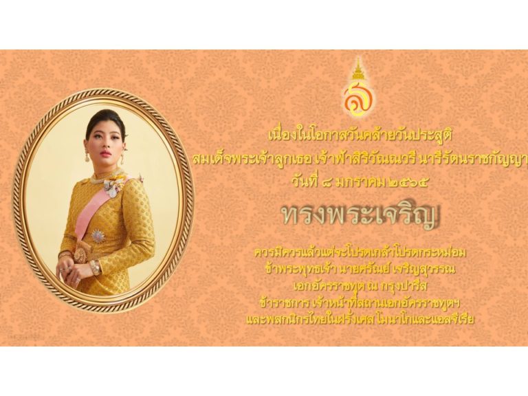 อ่านต่อ ถวายพระพรชัยมงคลเนื่องในโอกาสวันคล้ายวันประสูติสมเด็จพระเจ้าลูกเธอ เจ้าฟ้าสิริวัณณวรี นารีรัตนราชกัญญา