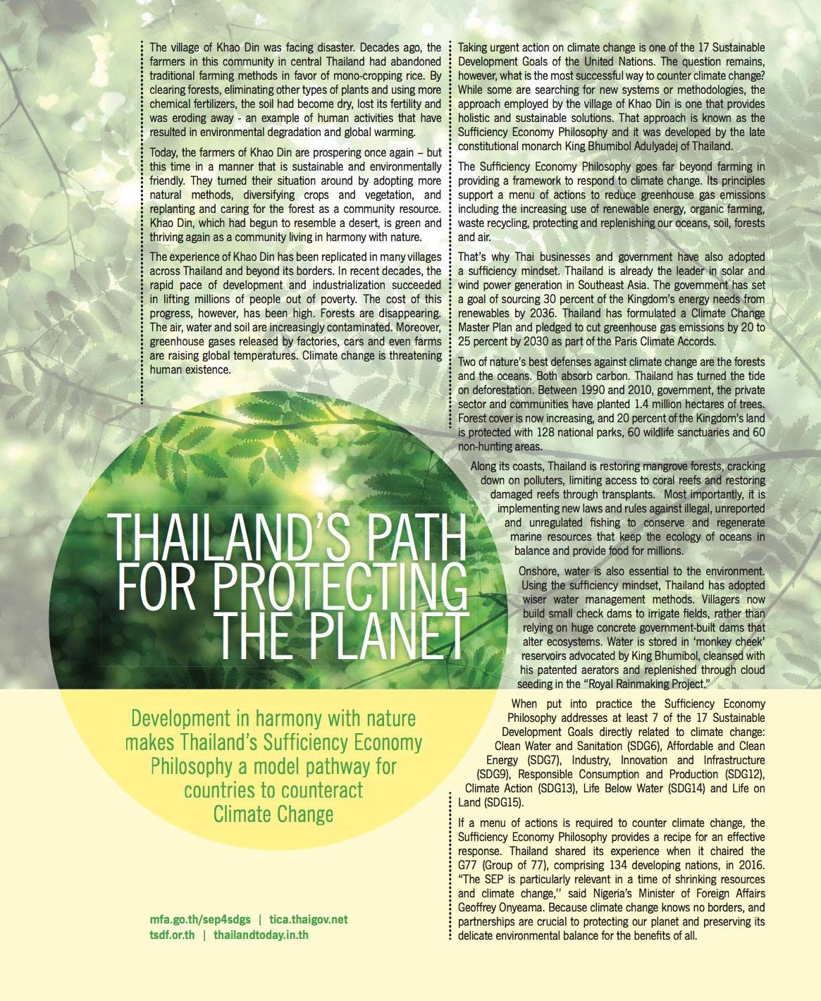 On parle des mesures adaptées de la philosophie de l’Economie suffisante pour protéger la planète. L‘Economie Suffisante est un modèle qui a été conçu et développé par Sa Majesté le Roi Rama IX.