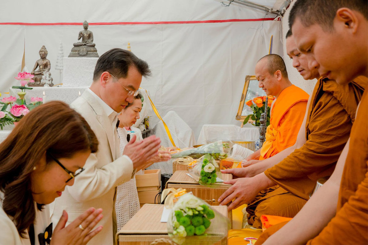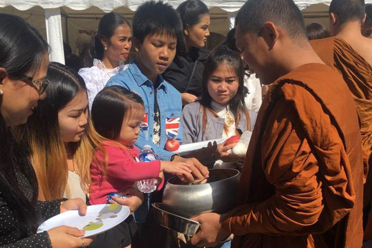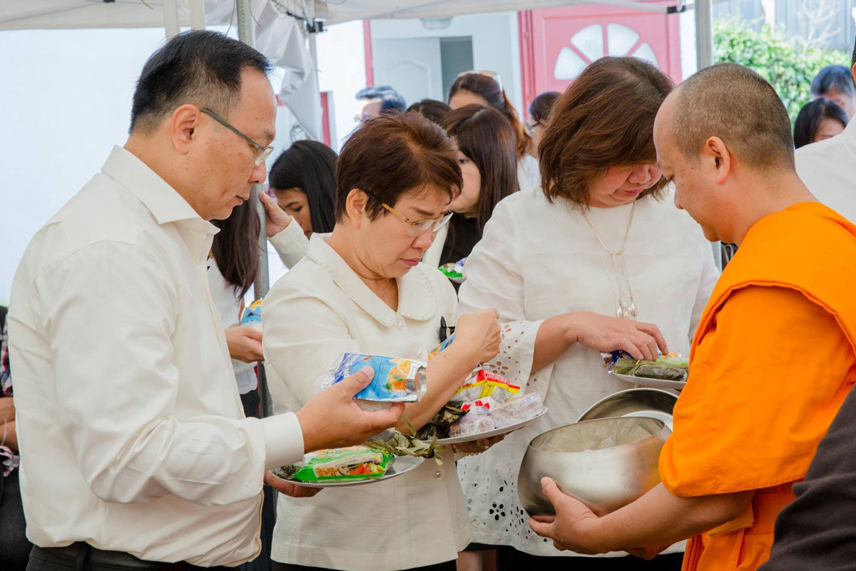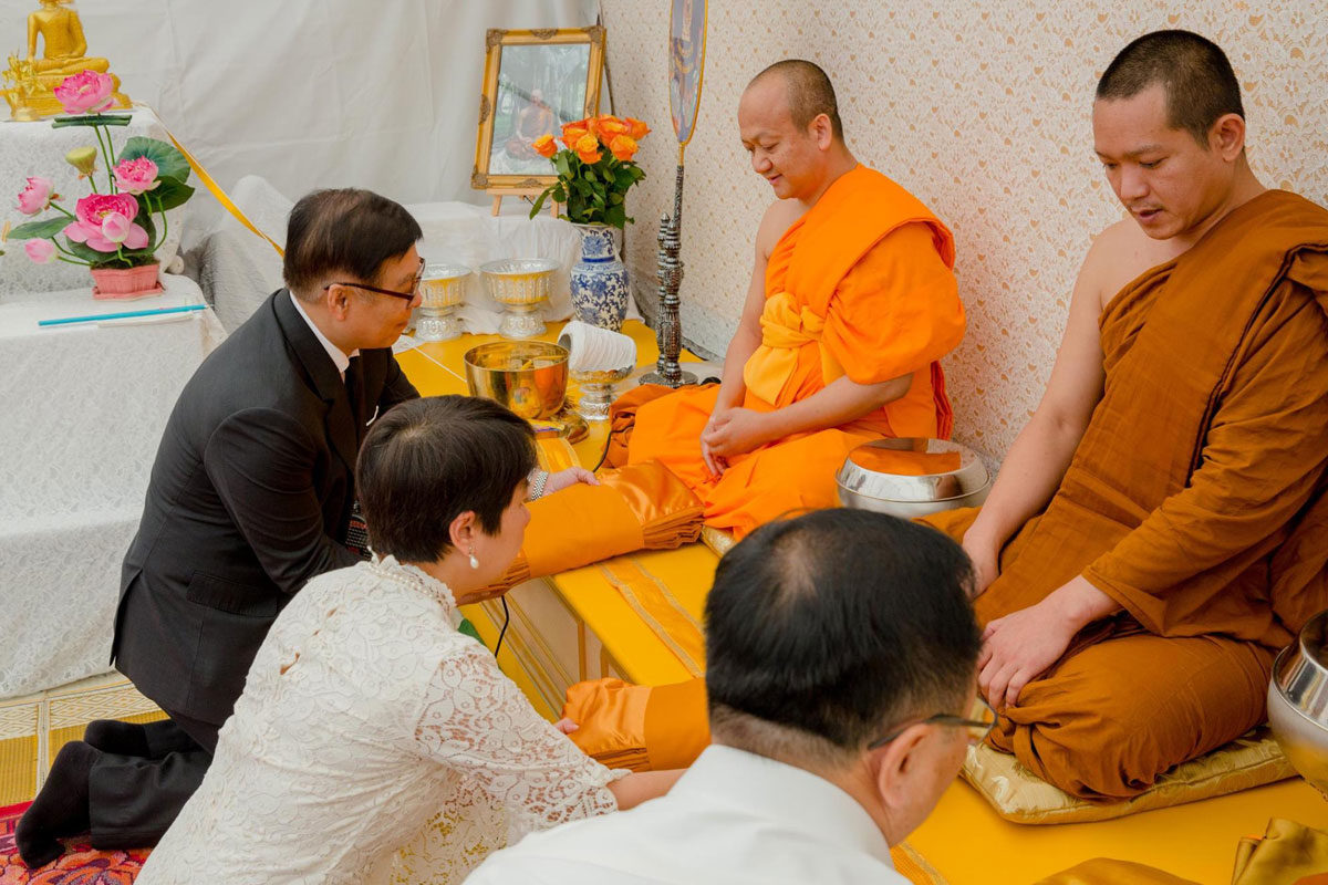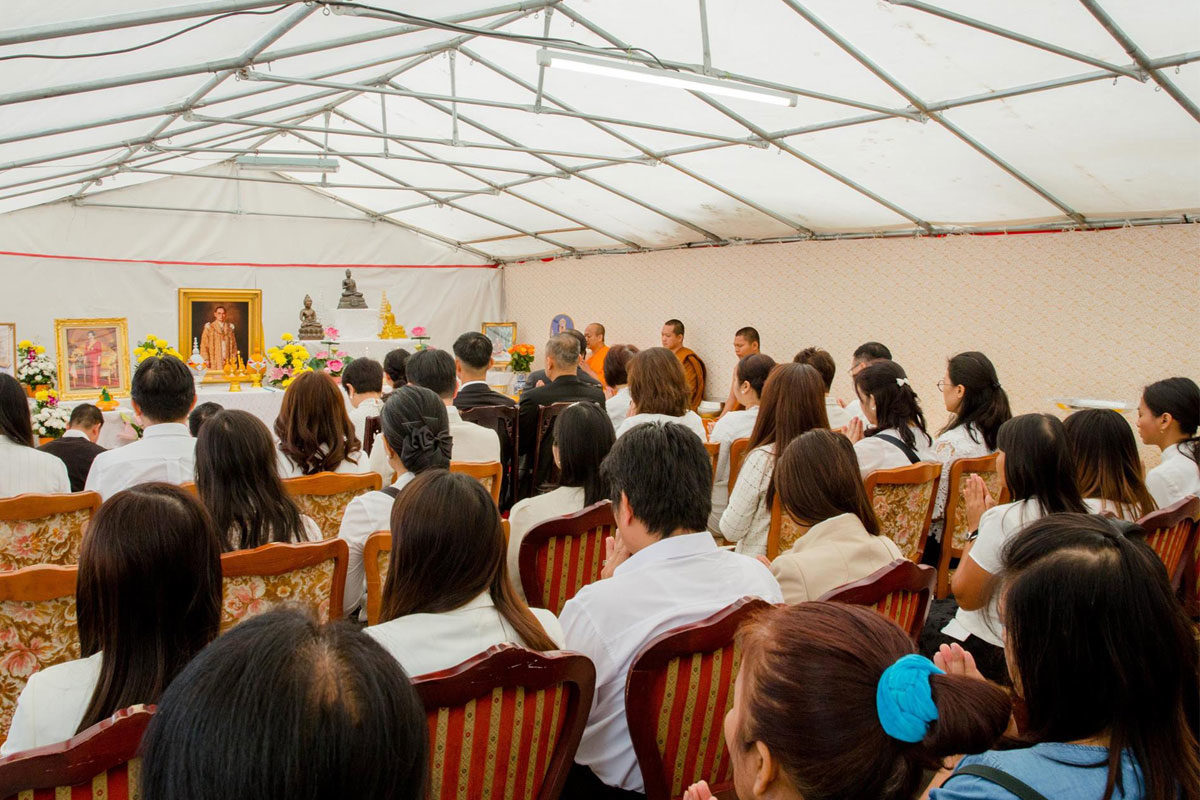 ต่อมาเวลา 11.00 น. เอกอัครราชทูตฯ และภริยา พร้อมด้วยข้าราชการและลูกจ้างสำนักงานทีมประเทศไทยและประชาชน ได้ร่วมพิธีทำบุญตักบาตรถวายเป็นพระราชกุศล ณ วัดพุทธนานาชาติ เมือง Villejuif โดยมีผู้เข้าร่วมจำนวนประมาณ 80 คน