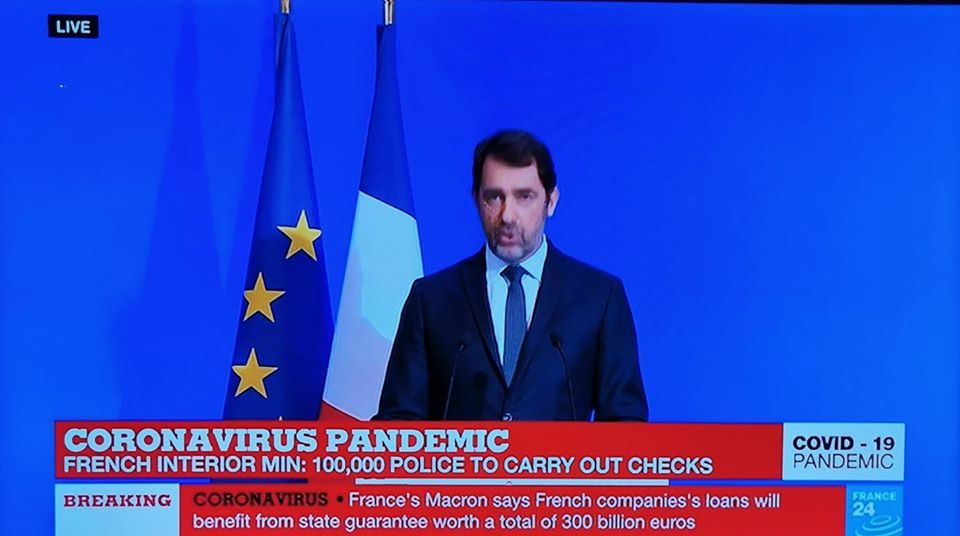 เมื่อคืนวันที่ 16 มีนาคม 2563 รมว. มหาดไทยฝรั่งเศสได้แถลงเพิ่มเติมภายหลังการแถลงของประธานาธิบดีเกี่ยวกับการออกมาตรการเพิ่มเติมเพื่อชะลอการแพร่ระบาดของเชื้อไวรัส โควิด -19 ว่า