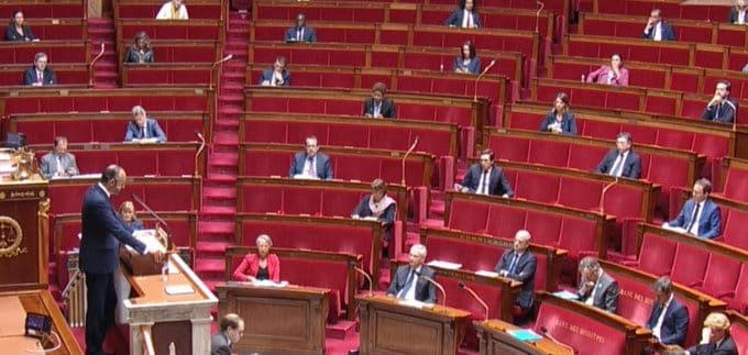 เมื่อวันที่ 28 เม.ย.2563 เวลา 15.00 น. นายกรัฐมนตรีฝรั่งเศสได้เสนอแผนยุทธศาสตร์การผ่อนปรนมาตรการห้ามออกจากที่พัก (สำหรับภายหลังวันที่ 11 พ.ค.) ต่อสภาผู้แทนราษฎรตามกระบวนการของมาตรา 50-1 ของรัฐธรรมนูญฝรั่งเศสซึ่งบัญญัติให้รัฐบาลหรือกลุ่มสมาชิกรัฐสภา สามารถเสนอให้รัฐบาลแถลงเกี่ยวกับประเด็นใดประเด็นหนึ่งโดยเฉพาะต่อสภาผู้แทนราษฎรหรือวุฒิสภา โดยมีการอภิปรายหลังการแถลง และอาจกำหนดให้มีการลงมติต่อการแถลงดังกล่าวได้ (แต่มิใช่การลงมติไม่ไว้วางใจรัฐบาล ซึ่งคาดว่าจะลงมติได้ในคืนนี้) สรุปสาระสำคัญได้ ดังนี้