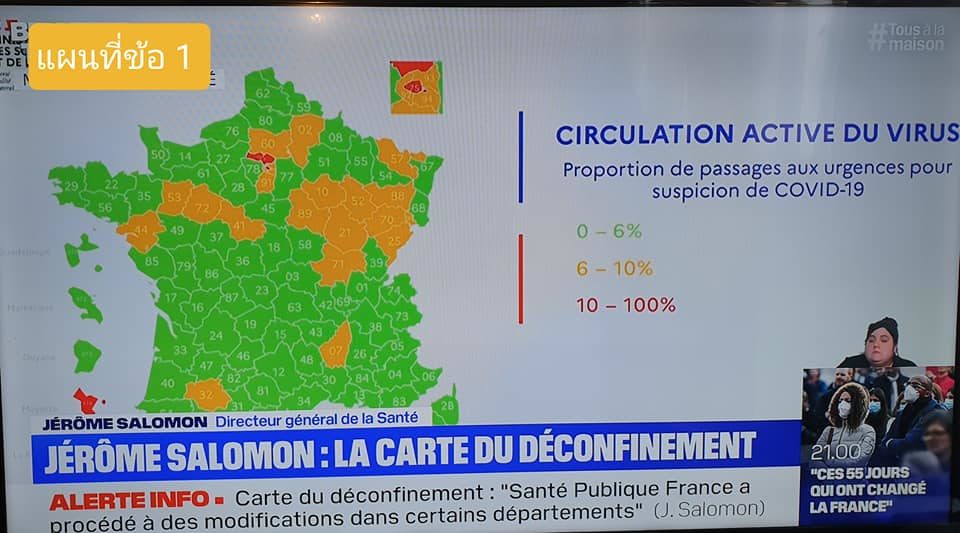 2. อธิบดีกรมสาธารณสุขขอแก้ไขข้อมูลในแผนที่ที่ได้เผยแพร่เมื่อวาน สำหรับ จ. ดังต่อไปนี้ Aisne, Calvados, Cher, Dordogne, Lot, Nièvre, Oise, Tarn และ Haute Corse และได้ update ข้อมูลในแผนที่ต่าง ๆ สำหรับวันที่ 1 พ.ค. ดังนี้