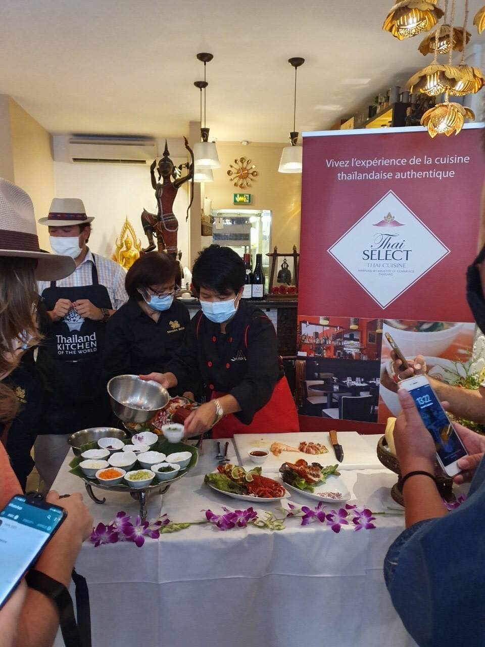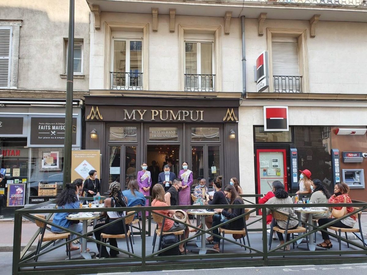 เมื่อวันเสาร์ที่ 12 ก.ย. 2563 นายศรัณย์ เจริญสุวรรณ เอกอัครราชทูต ณ กรุงปารีส และภริยา ได้เป็นประธานการจัดกิจกรรมเพื่อแนะนำและประชาสัมพันธ์ร้านอาหาร Thai SELECT ณ ร้านอาหาร My Pum Pui เมือง Levallois-Perret ชานกรุงปารีส ภายใต้โครงการพัฒนาส่งเสริมการตลาด สร้างภาพลักษณ์สินค้าอาหาร ธุรกิจบริการอาหาร และตราสัญลักษณ์ Thai SELECT ในภูมิภาคยุโรปตะวันตก ประจำปี 2563 ซึ่งจัดโดยสำนักงานส่งเสริมการค้าในต่างประเทศ ประจำกรุงปารีส โดยมี Dr. Frederic GUERIN, Director, Hardware Engineering Competence Center, Thales Defense Mission Systems นาย Didier DELANNEE ผู้นำเข้าข้าวไทยรายใหญ่ของฝรั่งเศส และบล็อกเกอร์ที่มีอิทธิพลในวงการอาหาร จำนวน 14 ราย อาทิ @popcorn961 @efoodtour และ @mellebonplan เป็นต้น เข้าร่วม